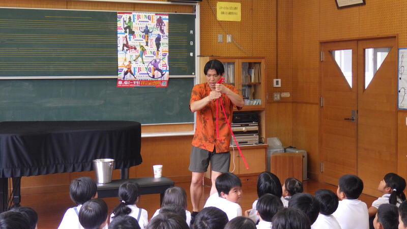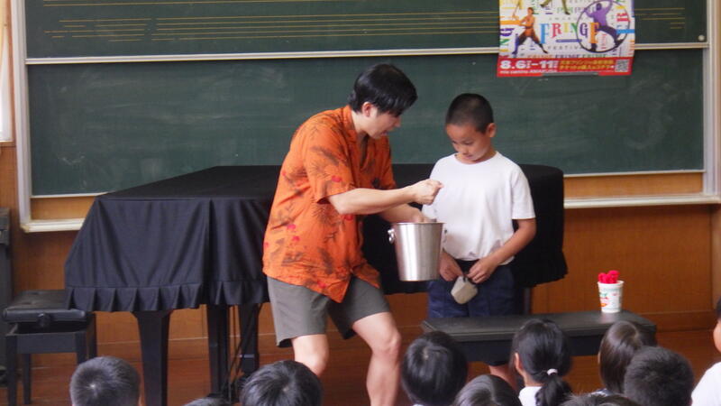 本日、昼休みの時間(30分間)に天草サーカス(マジック天草ショーゴさん)によるマジックショーの鑑賞会がありました。