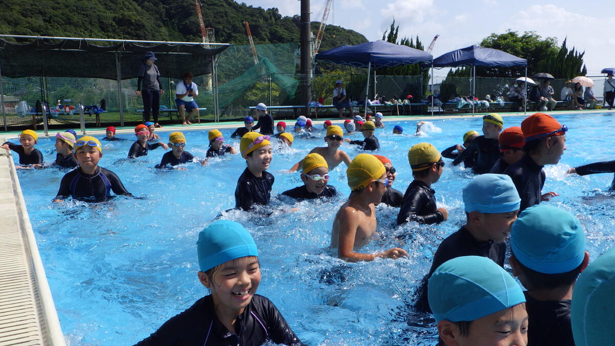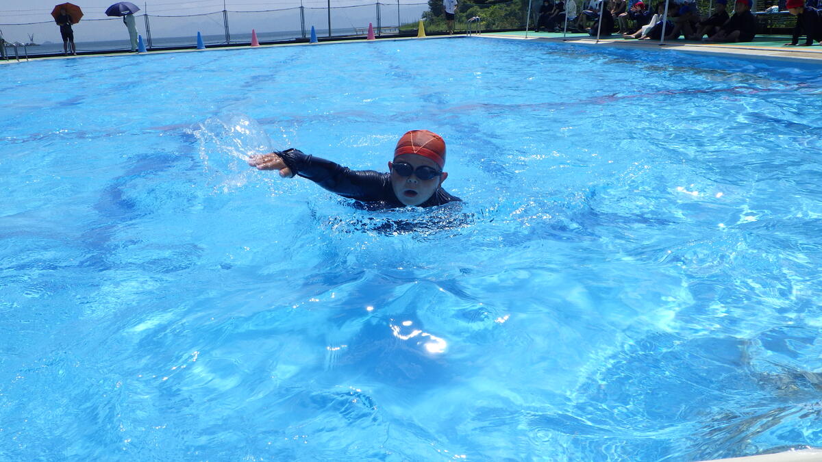 内容は、1・2年生の泳力紹介や3~6年生の "距離への挑戦"、"タイムへの挑戦" 、リレーなどでした。今日は天候にも恵まれ、子供たちはそれぞれの目標達成に向けて一生懸命頑張っていました。暑い中、保護者の方々にも多数参観いただきました。ありがとうございました。