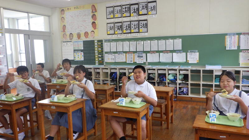 今日は1年生の保護者の皆さんの給食試食会を予定しておりましたが、残念ながら中止となりました。献立はこの時期にしか出ない「大矢野町の黄金のハモ」が登場し、子ども達も喜んで食べていました。またハモに関する動画を視聴し、「ハモの歯がやばいです!」「うなぎの仲間ですか?」など盛り上がっていました。