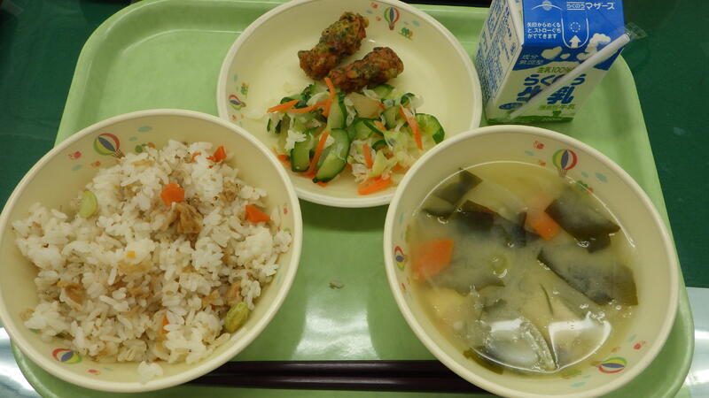 ☆しょうがご飯 ☆牛乳 ☆みそ汁 ☆竹輪の磯辺揚げ ☆即席漬け