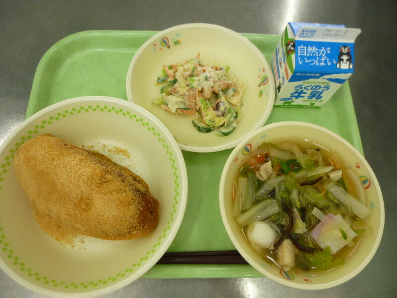 今日は阿蘇高菜漬けを使った手作りふりかけです。高菜とちりめんとゴマがたっぷり使って、ご飯のおともにぴったりです。今週は「給食王決定戦」があり、挨拶や爪の長さ、身支度などをチェックしましたが、しっかり気をつけている様子がみえました。来週以降もしっかり気をつけましょう。