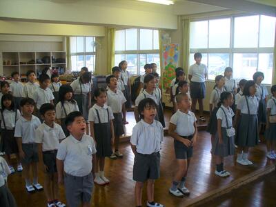 学校長から、夏休みワクワクした思い出や、2学期子供たちに取り組んでほしいことに