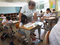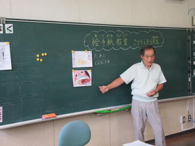 18日(木)、今年も、日奈久在住の佐藤士郎先生をお招きし、 1,2年生絵手紙教室を開催しました。 佐藤先生のアドバイスにより、子供たちは「ありがとう」の気持ちを、 日奈久の特産物やいいところを紹介する絵手紙に込めて、完成させました。 佐藤先生、今年もありがとうございました。