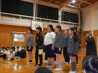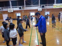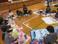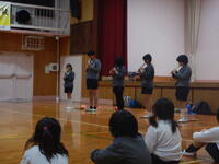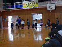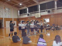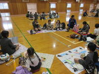 お別れ集会。各学年の出し物やゲームをしたり、縦割り班でお弁当を食べました。