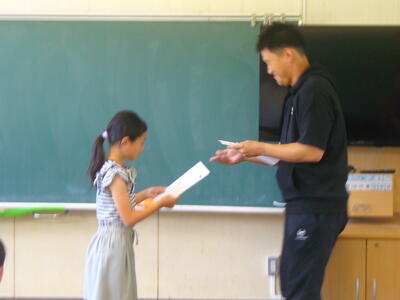 7月22日(火)、23日(水)の2日間、水泳教室がありました。 2日間の練習で、水泳が少し苦手な子供たちも、がんばって長い距離を泳ぐことが できました。 全員、記録賞(がんばり賞)をもらって、とても喜んでいました。