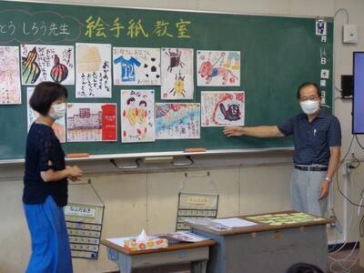 2年生と3年生に絵手紙教室に講師として佐藤士郎先生がいらっしゃいました。