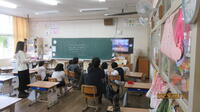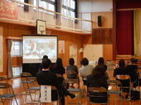 拡大防止のため、遠足を中止し、校内でZoomによる送る会を実施しました。