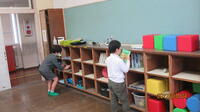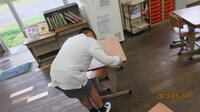 まずは大掃除。1年間使った教室に感謝を込めて掃除しました。