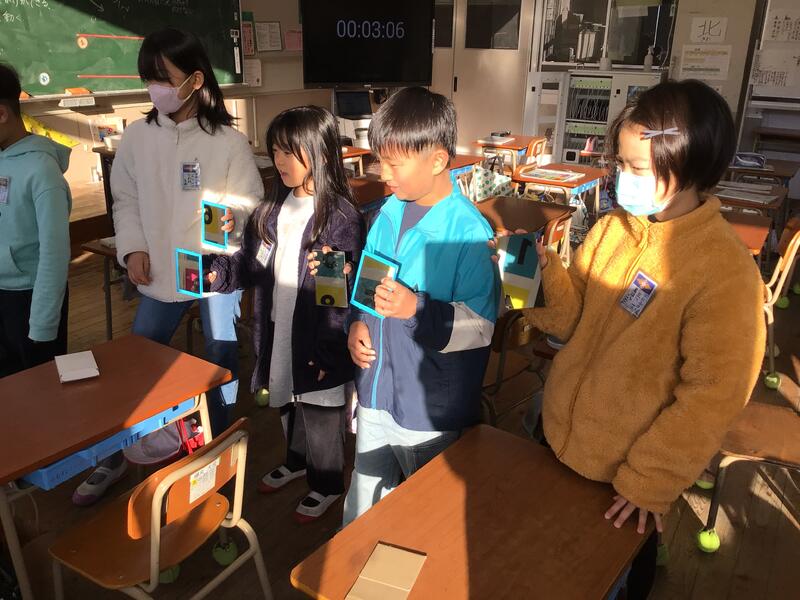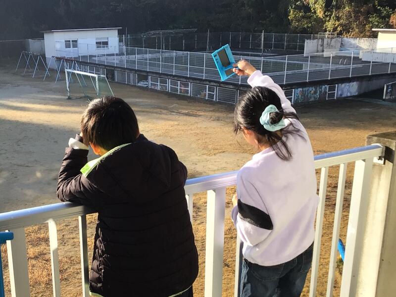 3年生の理科の授業です。『太陽の光は、どのように進むのか?』という学習課題を解決するために、子どもたちは、鏡を上手に使いながら実験を進めていました。後半、ベランダに出た子どもたちは、『学びの森まで届くかな?』と試していました。