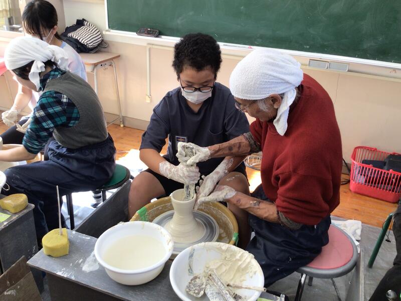 お弟子さんにもおこしいただき、6年生一人ひとりに寄り添いながら実演や手ほどきをしていただきました。子どもたちは真剣な表情で、作品作りに励みました。子どもたちが満足のいく作品を作れるよう、最後まで支えていただいたおかげで、作品が完成したときの達成感や大きな喜びを感じることができたと思います。焼き上がりが楽しみです!