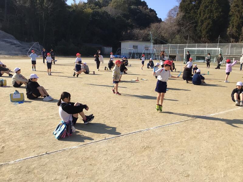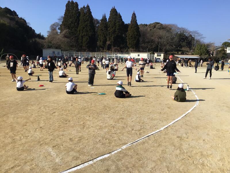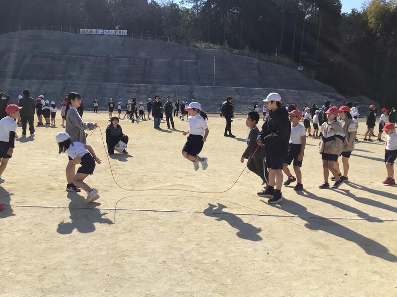 ぽかぽかと暖かい日差しの中、全学年参加の「なわとび大会」を運動場で行いました。春の訪れを感じさせるような青空の下、1年生から6年生まで全員が、集中力と持久力を発揮し、見事な跳躍を見せてくれました。縦割り班ごとの団体とびでは、息の合ったリズムで8の字跳びを跳ぶ姿に、応援の拍手が自然とわき起こりました。体育委員さんの活躍も素晴らしかったです。