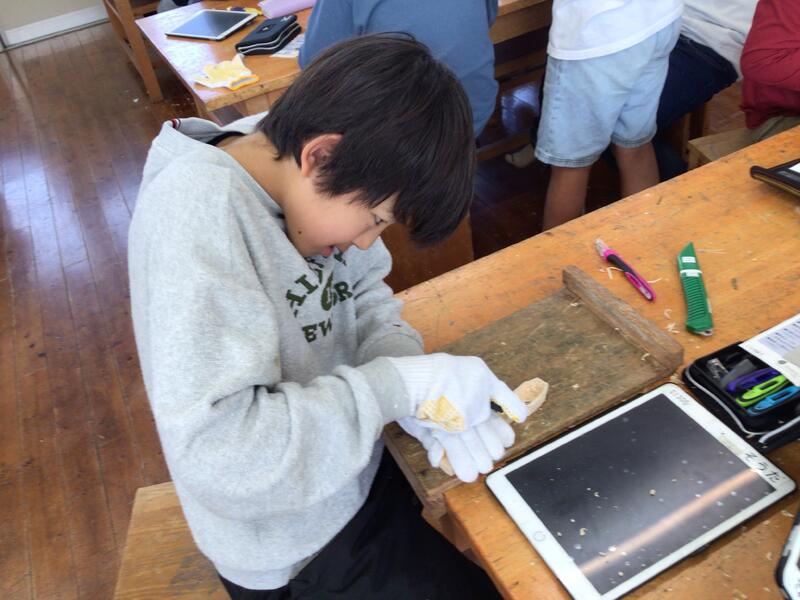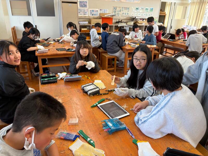 ヒノキの香りを楽しみながら、5年生がスプーンづくりに挑戦!