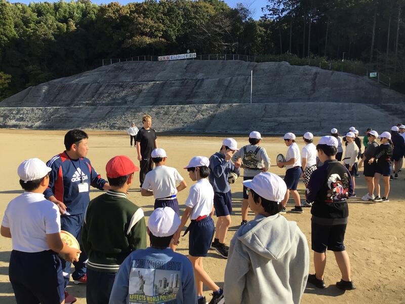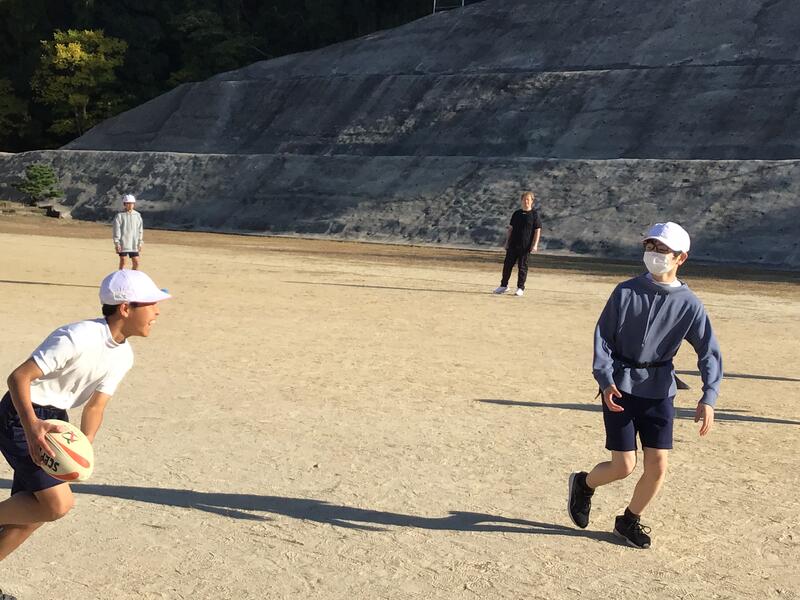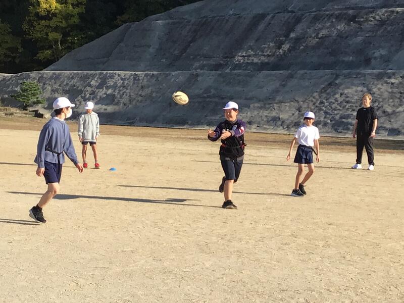 今日も岩橋先生にお越しいただき、6年生のタグラグビー教室を開催しました。12月13日(土)に予定されています荒尾市小学校親睦タグラグビー大会も視野に入れた取組です。タグラグビーの面白さをしっかりと味わいながら、からだを動かすことの心地よさを感じてもらいたいと思っています。子どもたちの笑顔がたくさん見られる時間となっています!岩橋先生、ありがとうございます!!