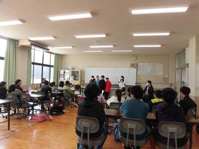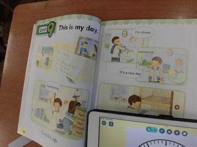 4年生は、起きる時間や寝る時間などを英語で紹介し合っていました。