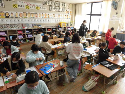 たくさんの温かい言葉と手作りのプレゼントに、6年生はうれしそうでした。