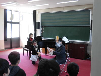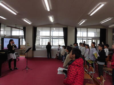 「オーシャンゼリゼ」や「カルメン」など、子どもたちにも親しみのある、またはこれから必ず出会うであろう曲を選んでいただき、実演だけでなく歌唱指導までしていただきました。