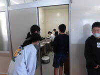 給食の準備のためにコンテナ室に来る子どもたち!