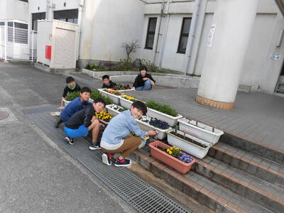 5年生のよい子達が、プランターを拭いてくれていました。