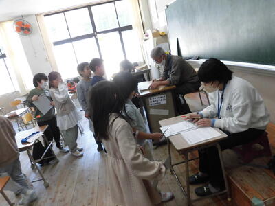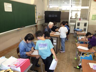 子どもたちは、丸付けボランティアの皆さんに丸を付けてもらいながら、たくさん褒めていただきました。