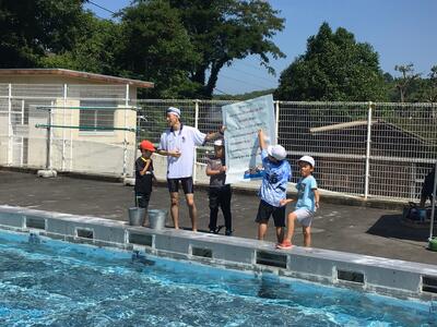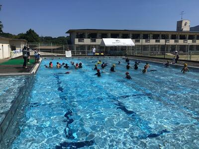 夏を感じさせる日差しのもと、子どもたちは、気持ちよく、きれいになったプールを楽しんでいました。