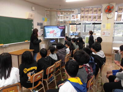 ICT支援員の方を講師にお迎えし、高学年の子どもたちにSNSの危険な面について学ぶ授業をしました。
