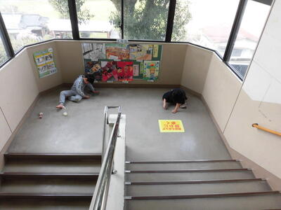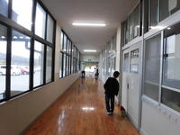 広い校舎、長い廊下を、少人数でキレイにしています。