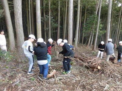 昨日今日で、学校西側の樹木の剪定と雑木の伐採をしました。