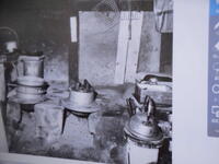 天秤棒を担いだり、「火のし」という昔のアイロンでハンカチにアイロンがけしたり!