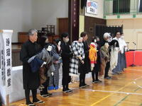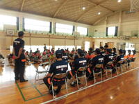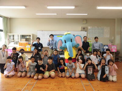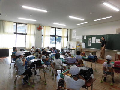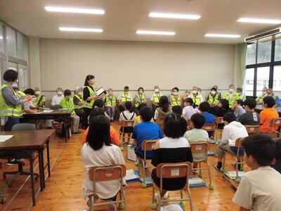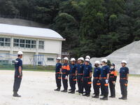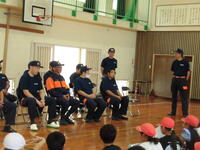 柴尾団長はじめ地域の消防団の皆さん15名が、3・4年生の学習のために来てくださいました。
