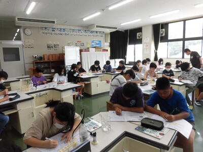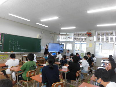 6年生は、二酸化炭素の性質について実験の考察をしていました。