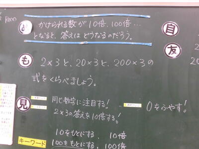 「数を10倍したり10で割ったりするとどうなるか、考える」というめあてです。