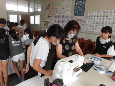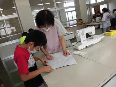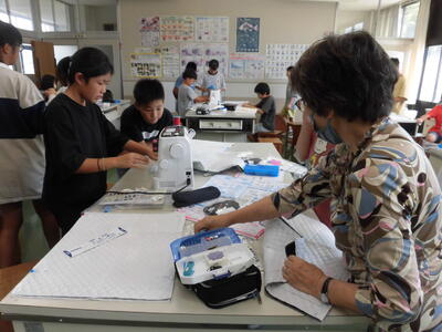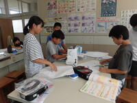 5年生の担任はお休みでしたが、ボランティアの「ミシン隊」の皆様のおかげで、ほとんどの子がナップサックを完成させました。