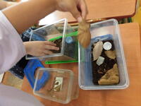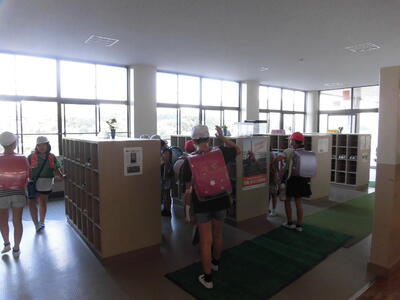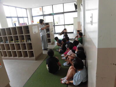 1年生が何をやっているかと思ったら、靴箱にきちんと靴を入れる約束をしていました。