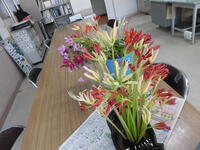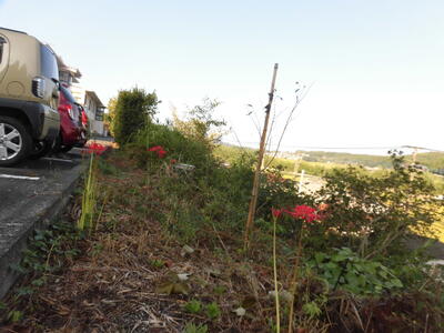 校長室前の彼岸花は、花火のように咲き揃いました。
