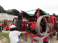 消防団のお仕事への質問にたっぷり答えていただいた後、消防車にも乗せていた来ました。