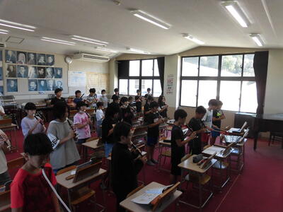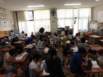 緊張する低学年の子供たちの周りで、放送委員のお友だちは楽しそうです。