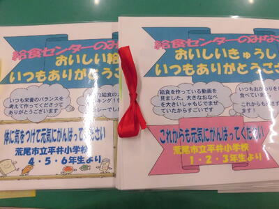給食センターの皆さんに、全校児童が感謝のお手紙を書きました。
