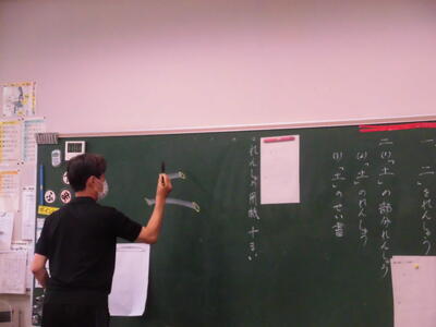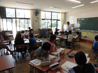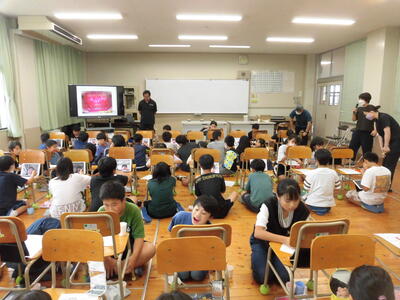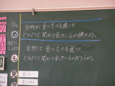 6年生が、土本先生と「食物連鎖」について学んでいました。