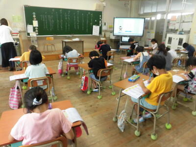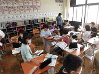 1年生は「色」、2年生は「数」を英語で言う練習をしていました。