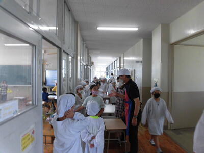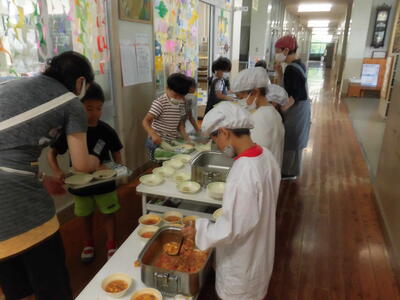給食の準備について、上級生は自分たちでほとんどできますが、低学年は、まだまだたくさんの支援が必要です。