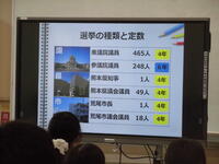 荒尾市の選挙管理委員会の皆さんが、選挙の目的や仕組み、意義について6年生に授業をしてくださいました。