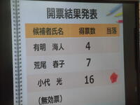 担任の梅田先生も「有明海人」という名前で立候補したのですが、「ぼくに投票したら、身長が伸びるよ!」と声をかけられていた別の候補者に敗れ、残念ながら「平井市長」になることはできませんでした。
