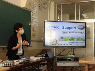学校紹介やゲームなどをとおして、他の学校のお友だちとも仲よくなる取組です。