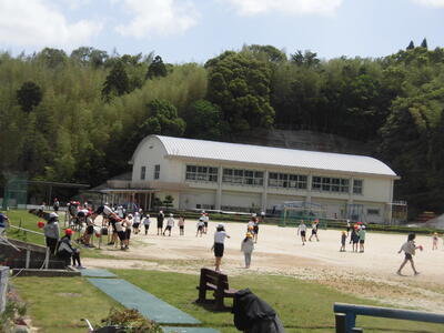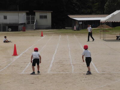 運動場の隅の花も、子供たちの頑張りを応援しているように咲いていました。
