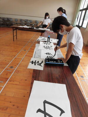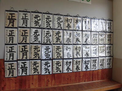 玉名荒尾教育会の書き初め展の巡回展を、本校で実施中です。