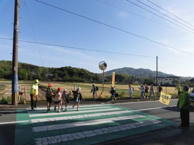今朝は、民生・児童委員の皆さんが、交通指導に立ってくださいました。