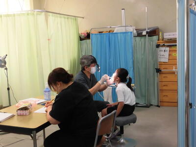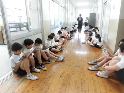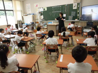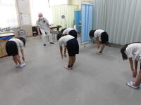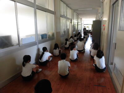 コロナ禍で注意していたフッ化物洗口を再開するに当たり、全校児童で練習をしました。