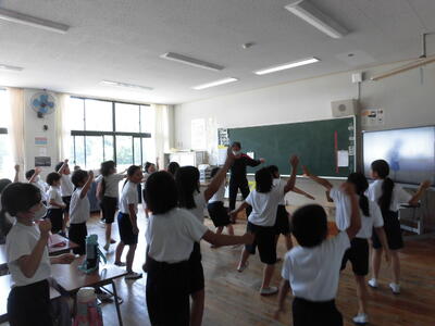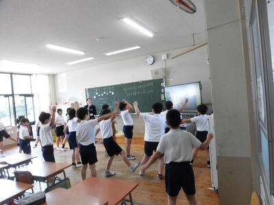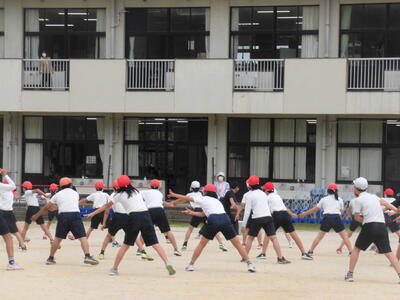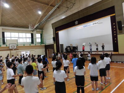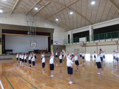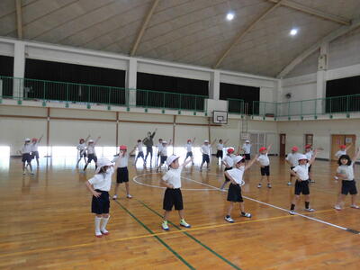 低学年は、体育館で「新時代」のダンスに取り組んでいました。