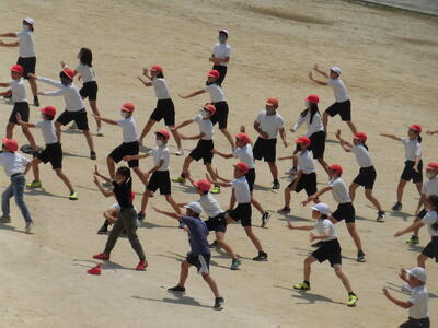 運動会のダンスは、低・中・高学年に分けて表現します。