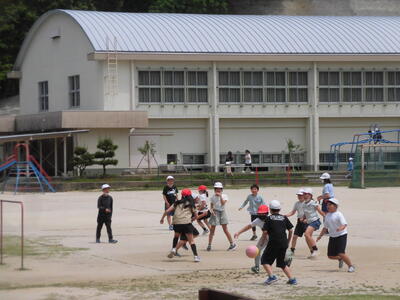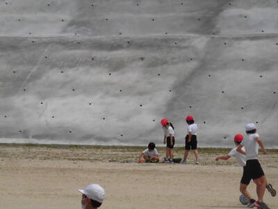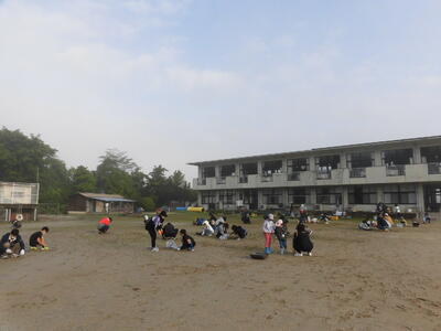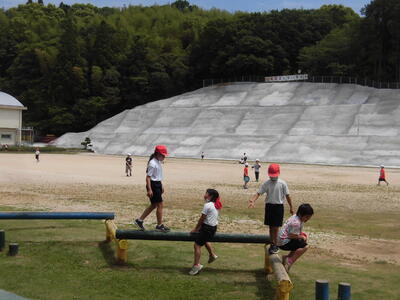 2時間目が終わる頃には運動場も乾いたので、大急ぎで遊びに出かけます。